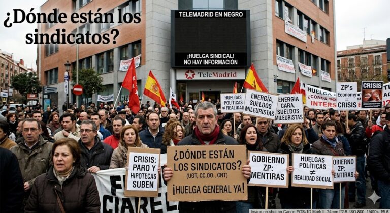 Anteayer, Telemadrid volvió a aparecer en negro. ¿Por qué? Porque los sindicatos CC.OO, UGT y CNT decidieron que convocar nuevamente una huelga. Para Telemadrid sí, para la situación actual no. Curioso, por lo menos. Ayer salía el presi ZP diciendo…